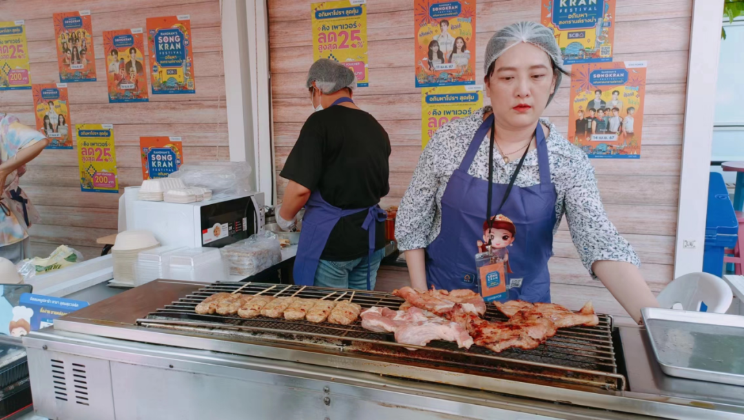 全泰国的美食,烤肉、泰式烧麦、榴莲,都在不同风格的小店里售卖。