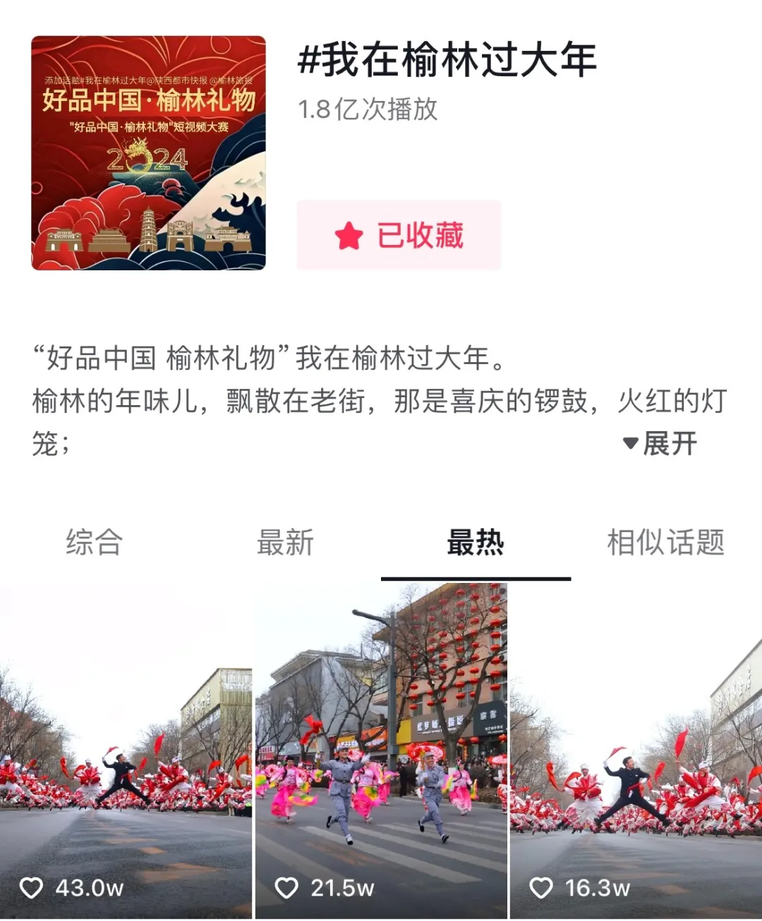 此次短视频大赛得到社会各界人士的关注和支持,以#我在榆林过大年 和#爱上榆林的100个理由 为话题的初赛和决赛,吸引了超百位来自全国各地的达人参与,最后以线上评选和线下评审相结合,共选出30位榆林旅投优选达人,未来将与榆林旅投共同发展电商数字经济。