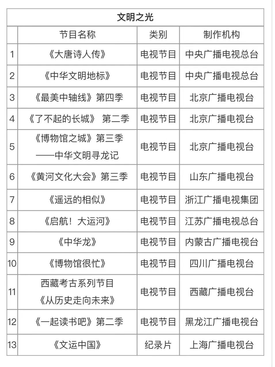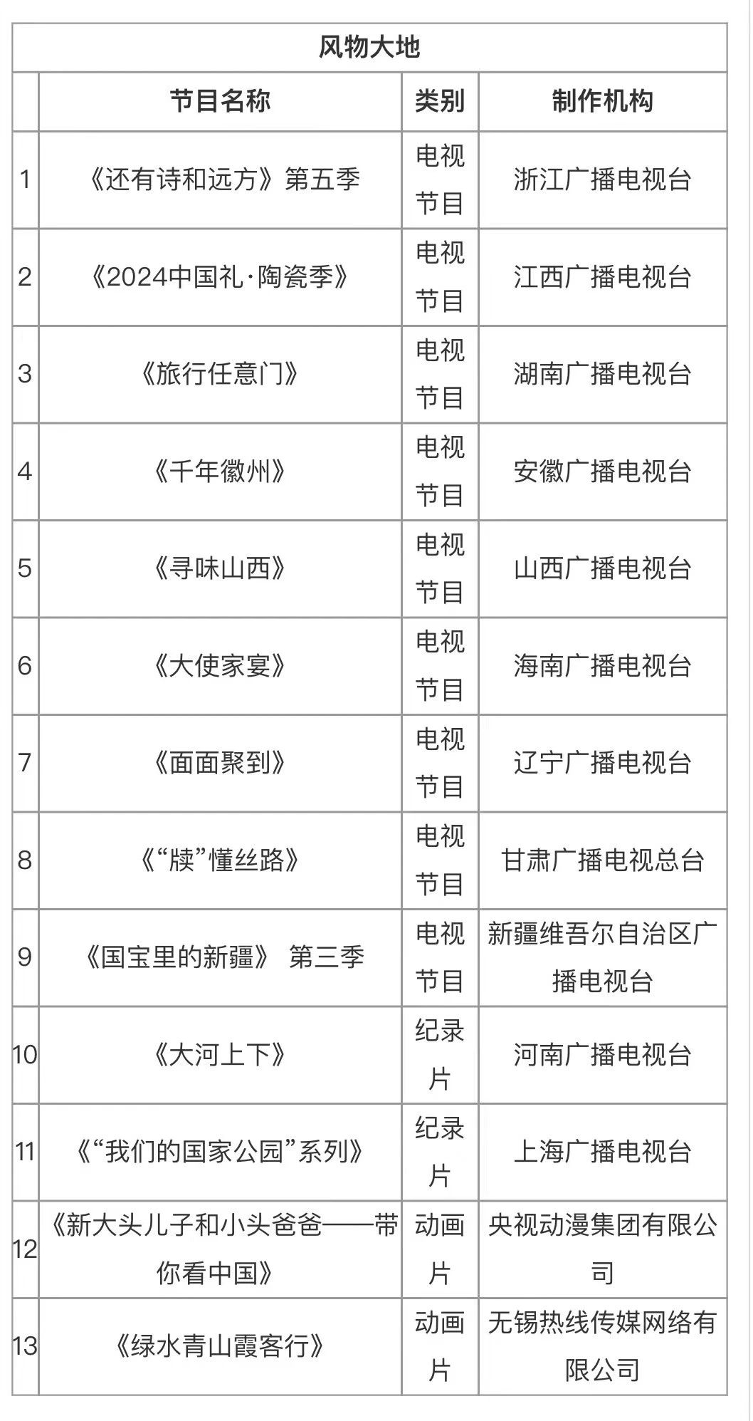 “电视陪你看中国”发布片单