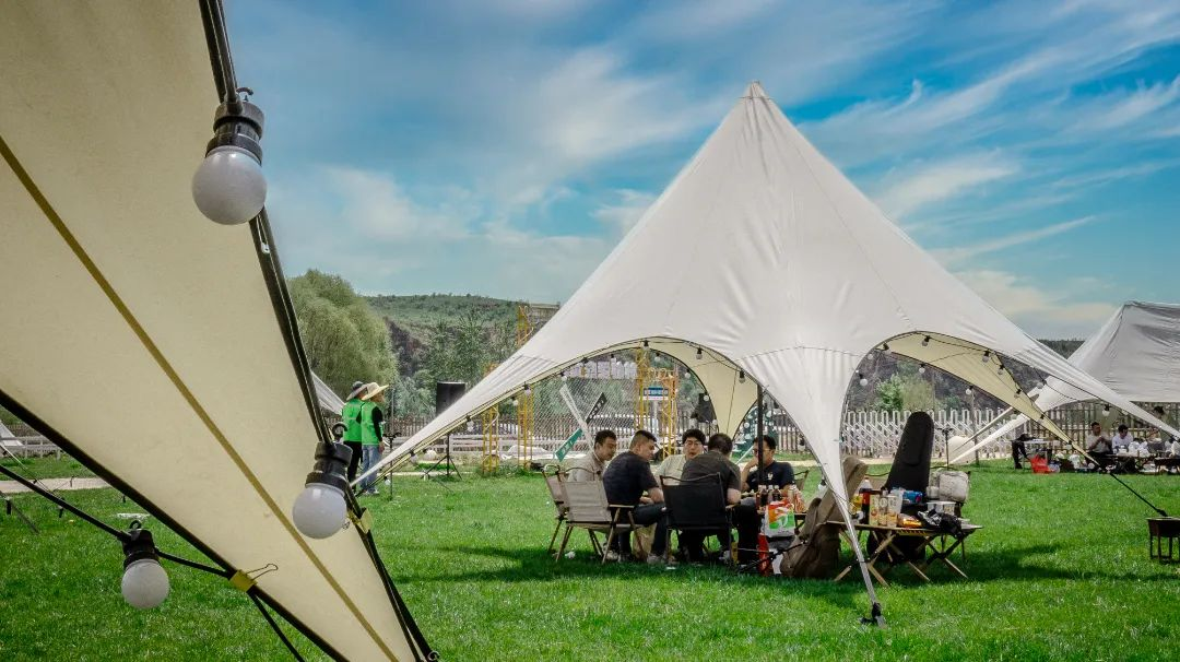 游客们在鱼儿湾露营基地