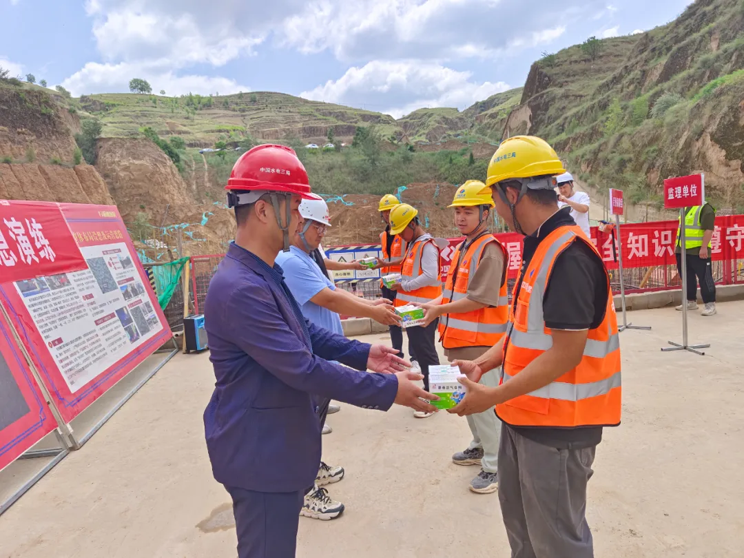 米脂公司开展消防应急演练活动,模拟现场2#楼大厅材料着火事件,杨家沟红色文化科技产业园项目总承包部立即启动应急救援预案,展开救援工作。演练结束后,安全人员还现场讲解了灭火器的使用方法及注意事项,为现场作业人员发放了防暑降温药品和安全手册。(黄珂)