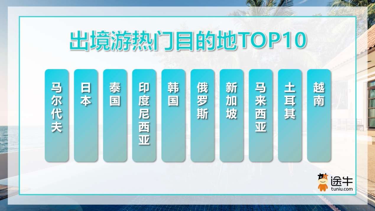 出境游方面,马尔代夫、日本、泰国、印度尼西亚、韩国、俄罗斯、新加坡、马来西亚、土耳其、越南等出游热度排名靠前。其中,印度尼西亚出游热度增长更为显著,暑假第一周出游人次环比前一周增长了近75%。此外,前往马尔代夫、日本、新马泰等方向的游客出游人次环比前一周也均增长了25%以上。