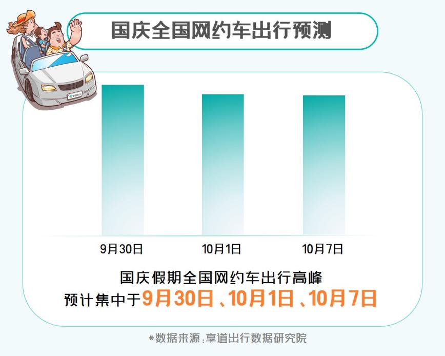 “十一”黄金周将至,全国出行需求迎来大幅增长。9月29日,享道出行发布国庆假期出行预测:今年国庆长假期间国内跨区域出行活跃,网约车出行需求预计同比增长50%,出行高峰日为9月30日,次高峰日为10月1日以及10月7日。