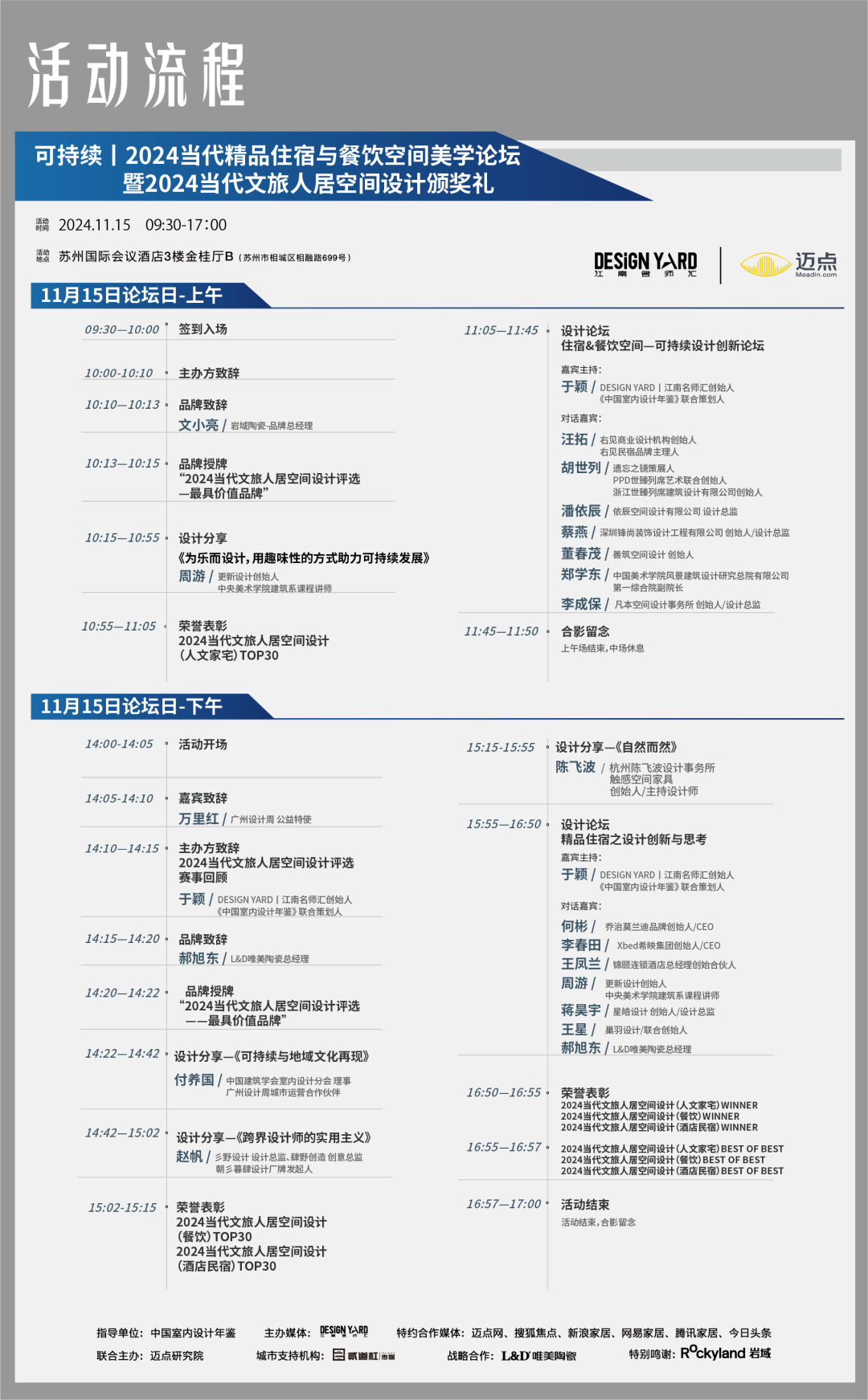 而今,2024当代精品住宿与餐饮空间美学论坛暨2024当代文旅人居空间设计颁奖礼即将在苏州——这座承载着深厚历史底蕴与璀璨文化光芒的城市拉开帷幕。
