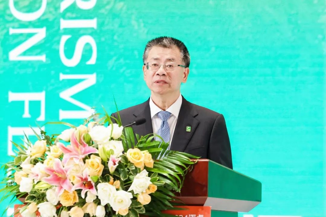 在2024文旅住宿节的开幕式上,杭州东方网升科技股份有限公司董事长乔毅、全球酒店与旅游培训组织AMFORHT秘书长吉布里尔·福法纳、中国建筑材料流通协会会长秦占学先后发表致辞。