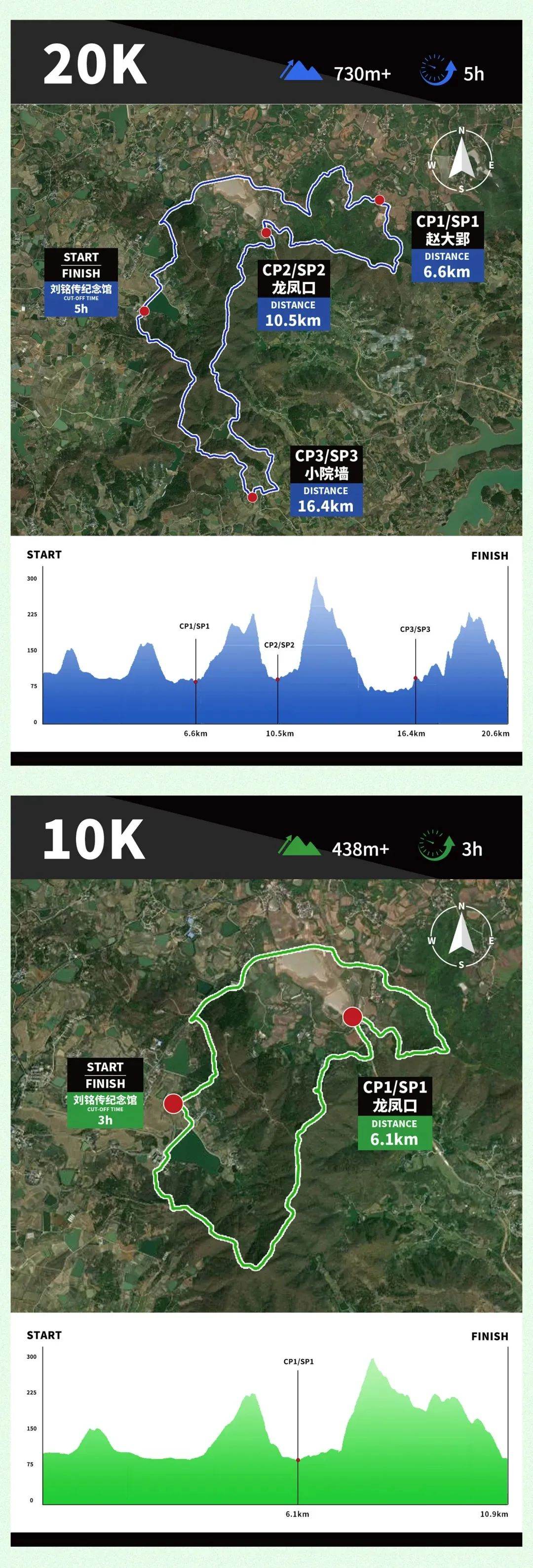 赛道途经铭传乡和山南镇,围绕大潜山越野公园和大潜山周边山脉为主体展开设计,将刘铭传墓园、刘铭传纪念馆、潜山水库、老牛坟水库、龙凤井等串联,覆盖了众多人文景点与自然风光。