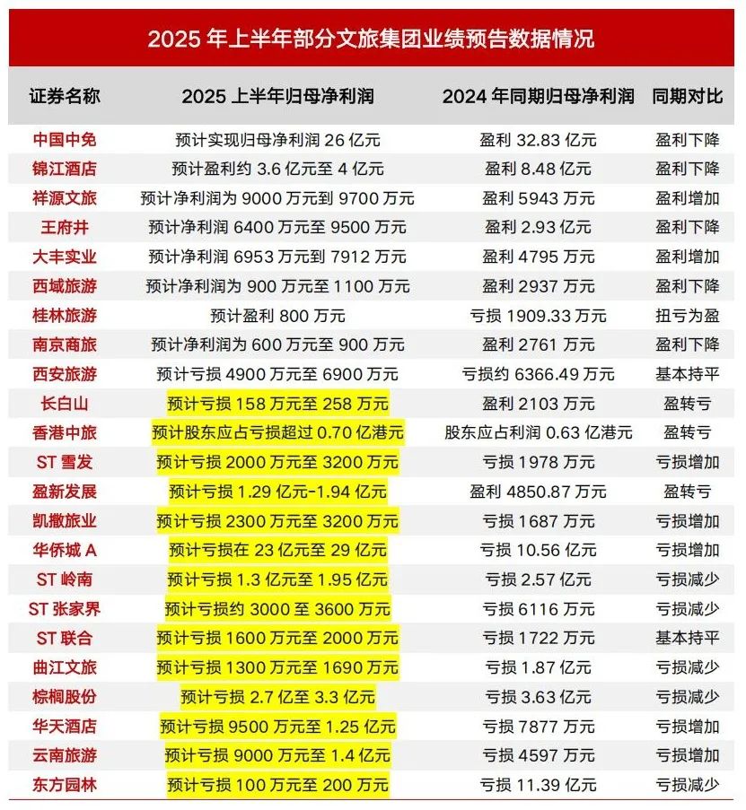 与此同时,根据迈点研究院不完全统计,7月以来已有多家文旅上市企业发布2025年上半年业绩预告,其中9家盈利,14家预计亏损,呈现明显分化态势。