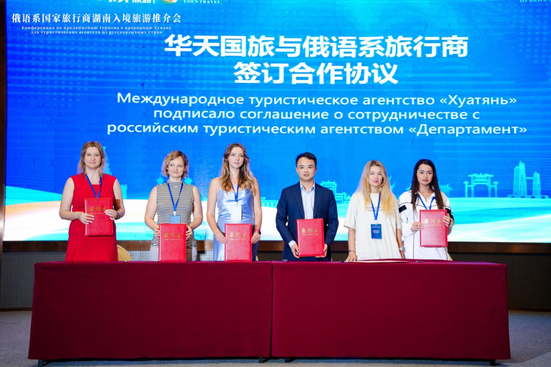 会上,华天国旅与China Travel中国之旅、Russian Express俄罗斯快线旅游公司等5家俄语系旅行商签署战略合作协议,共同推动湖南旅游产品在俄语市场的深度拓展。