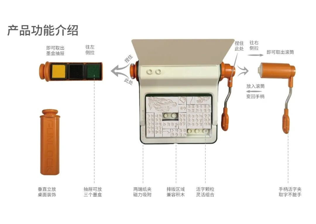 荣获金奖的“活字印刷机套盒”以国家级非物质文化遗产活字印刷术为创作灵感,巧妙融合儒家文化元素,通过创新设计使传统技艺焕发新生。该产品不仅具有观赏价值,更具备教育功能和互动体验性,是推动优秀传统文化创造性转化、创新性发展的生动实践。