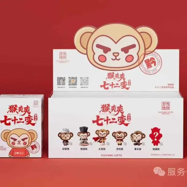 “猴爽爽IP”以“七十二变”创新形式贴合市场需求,产品通过盲盒经济模式拉近传统文化与大众的距离,以萌趣形象打造沉浸式互动体验,带领观众深度感受贵州本土文化魅力,沉浸式体验多彩贵州的文化底蕴,为地域文化传播搭建重要桥梁,助力贵州文旅IP影响力提升。