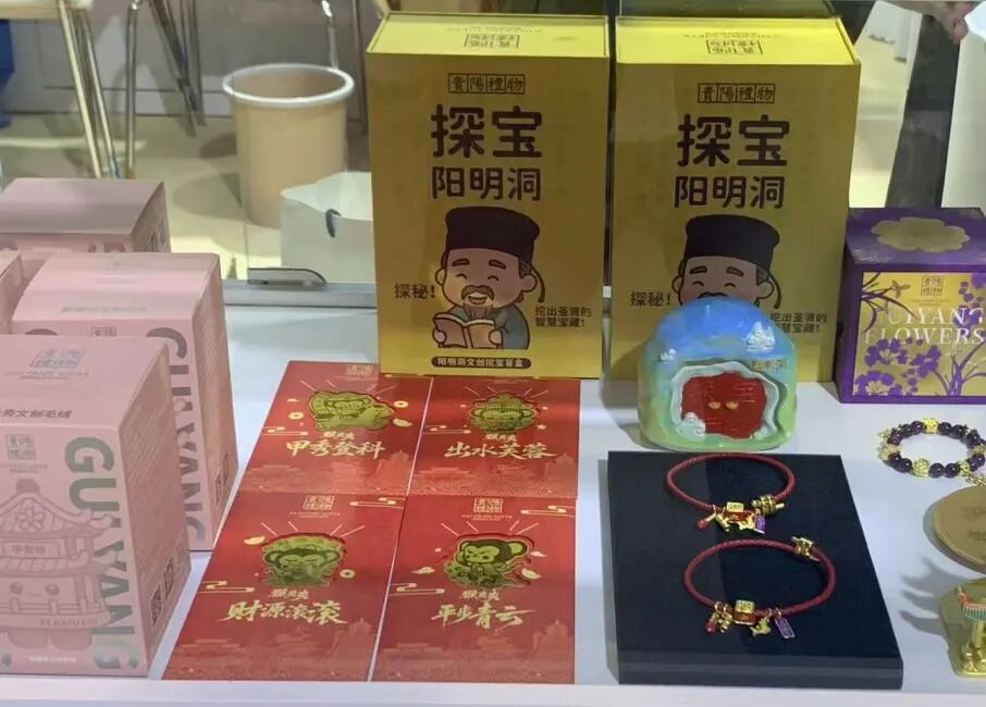展会同步展出“猴爽爽IP”系列毛绒挂件、黄金手机贴等衍生产品,以及“阳明洞探宝”主题盲盒、甲秀楼文创周边、贵阳繁花手串等特色好物。展品涵盖城市符号、非遗记忆、趣味潮玩、实用单品等多元品类,全方位展现贵州文创的创新活力与文化底蕴,让“爽爽贵阳”的城市魅力触手可及。