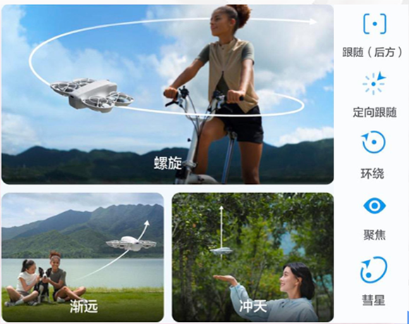 采用的大疆Neo拍照无人机仅重135克,轻盈如燕。无需繁琐的遥控器,实现掌上起降,操作直观简单。从孩童到长者,全年龄段用户都能轻松驾驭,全家共享空中创作乐趣。