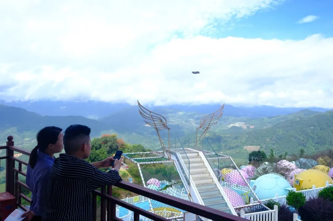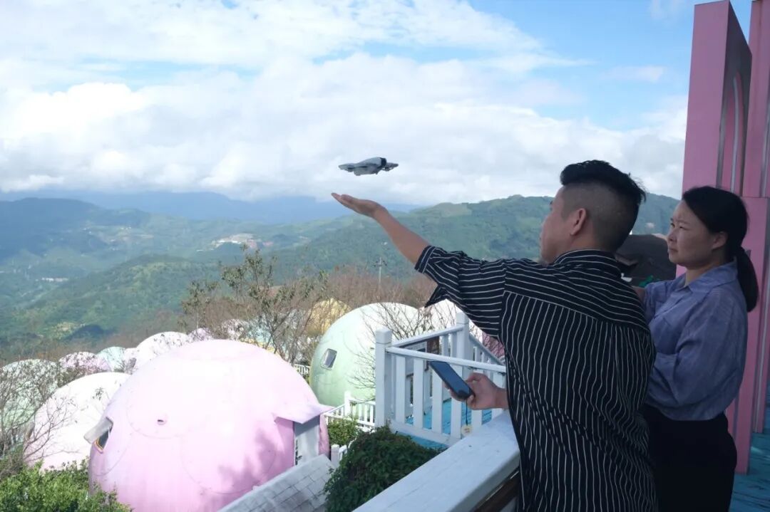共享无人机为游客提供了全新的观景视角和拍摄体验。不再是千篇一律的地面拍照,而是通过空中镜头重新发现景区的壮美与灵动:从高空俯视官畲民族的七彩屋脊,在彩蝶湾上空捕捉海岸线与沙滩的完美曲线,从不同角度记录高峰谷的层峦叠嶂,或是俯瞰蜗牛村独具特色的田园风光,这些曾经只能想象的角度,如今变得唾手可得。