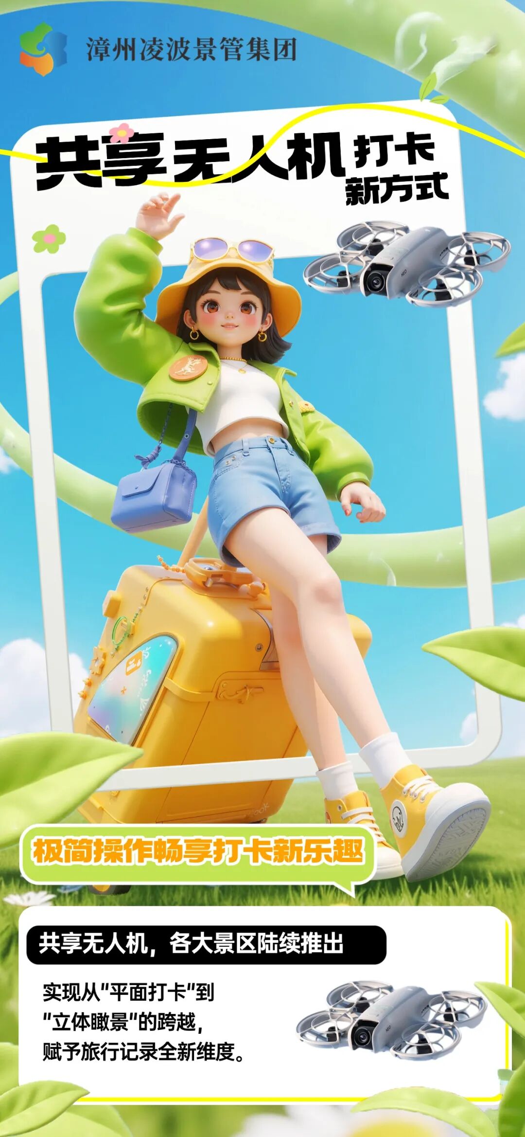 随着低空经济的发展和无人机技术的不断进步,一场全新的旅行拍摄革命正在悄然兴起。由漳州凌波景管集团与世辉航空合作推出,在华安七彩官畲景区、东山彩蝶湾景区、平和高峰谷景区、龙海蜗牛村景区布局“共享无人机”,实现从"平面打卡"到"立体瞰景"的跨越,赋予旅行记录全新维度。