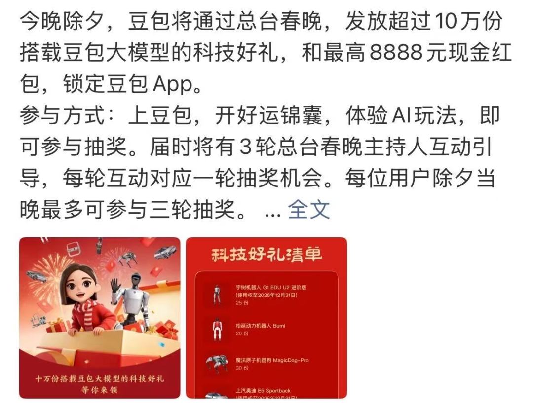 用户端的科技体验也没落下,春节AI入口战早早打响,阿里、腾讯、百度等大厂狂撒超45亿元红包和补贴,字节跳动旗下豆包则联手火山引擎的“算力+大模型”组合强势入局,让大家在抢红包的快乐中,感受AI的魅力。
