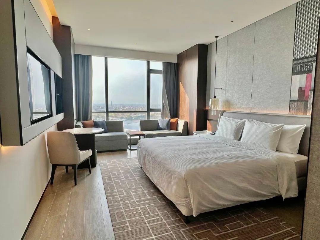 酒店150间客房及套房皆可饱览两江交汇胜景,或俯瞰两岸无限风光及渝中半岛城市景观。每一间客房糅合复古与现代的元素,voco品牌经典配色与吉祥物,与黄包车、旧船票、精美鸟笼等装饰元素相映成趣,营造生动、个性、放松的住享体验,伴宾客悠享温馨自在的“独处时光”。