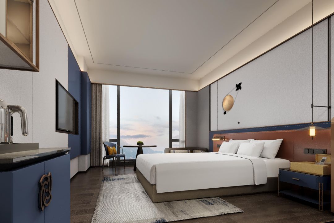 江门山水富丽华酒店作为大湾区首店,将以山水富丽华的2.0产品面世。设计理念为“写意山水”,通过恰到好处地表达,将东方山水意境融入方寸空间之中,再借助充满高级感的色调和材质,展现东方美学的内涵与气质,立足中国文化,同时结合在地人文,打造当代美学生活空间,体现国际化山水品味;功能上,融入智慧、智能配套,营造现代便捷的生活方式,可谓软硬兼施。