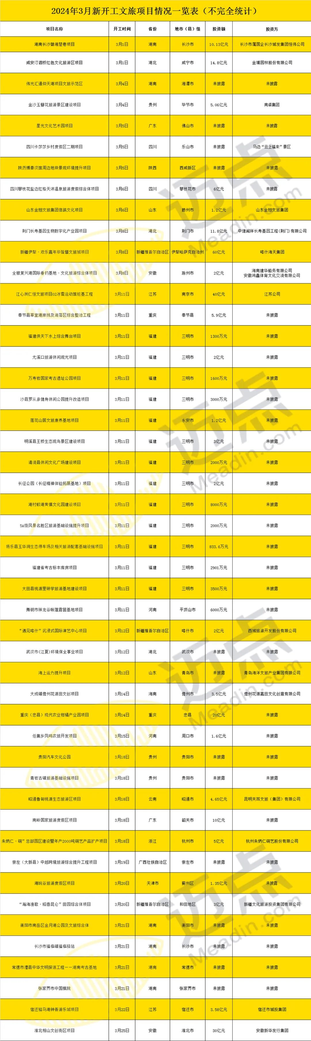 3月开工48个文旅项目,最高金额达60亿元,涉及文旅演艺、文旅康养等业态