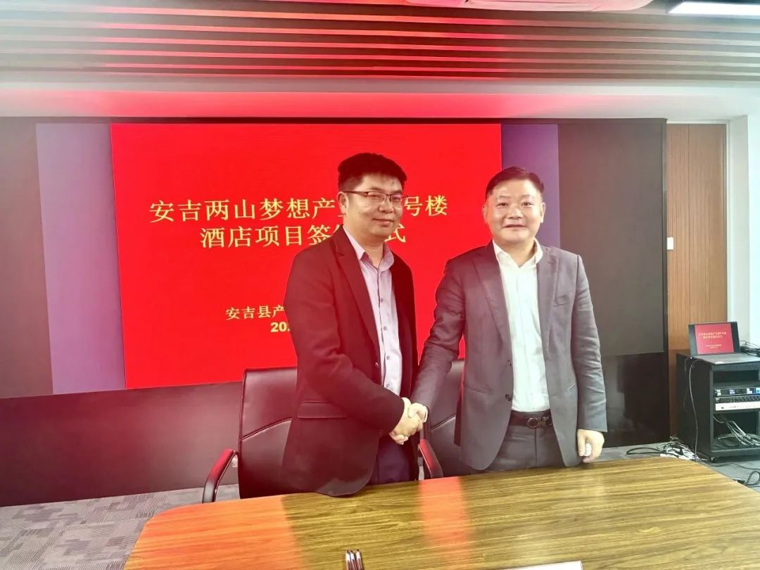 11月14日,两山梦想产业园酒店项目举行签约仪式,集团党委书记、董事长徐平与安吉美佳酒店有限公司(筹)负责人金华出席仪式。璞伦酒店项目所在的两山梦想产业园,东靠凤凰山,南临凤凰山二区公园,景色优美,环境清幽,周边设施齐全,且从安吉高速出口5分钟即可直达,区位优势明显,非常适合打造商务轻奢型酒店。