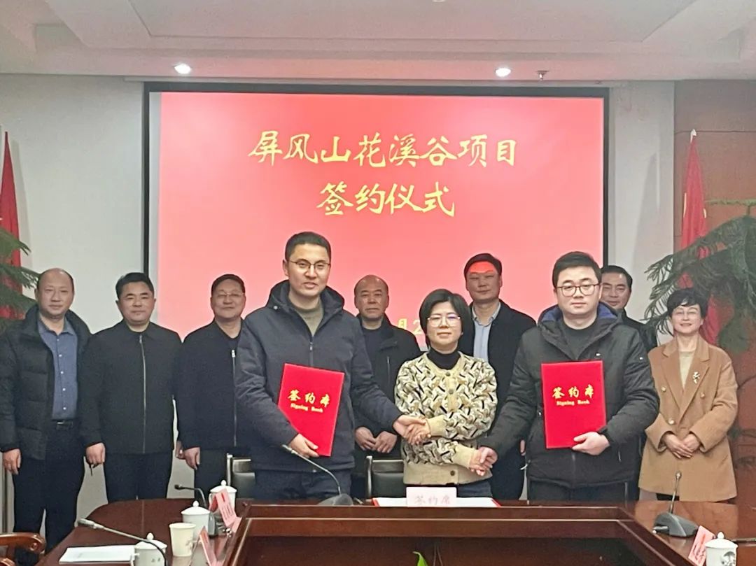 2月26日下午,“屏风山·花溪谷”项目正式签约。该项目由苏州园科生态建设集团有限公司投资建设,总投资达1.2亿元。项目规划分为两期实施,逐步构建起完整的产业链和旅游生态圈。一期“屏风山·花溪谷”:利用主干道及现状水系打造浪漫樱花带和清雅梨花带,形成壮丽的植物风光带;现状农田将整理为高标准农田观光带,围绕花园中心、游客中心,构建“两心三带”的格局。同时,通过对现状民居的改造提升,融入鲜花民宿、花卉餐饮、花艺工坊等创意商业业态,带动村集体和村民共同参与生产与运营,形成生产、观光一条龙的产业链。二期“屏风山·露营地”:依托现状山林及水库资源,平整场地并种植秋色叶植物,打造绚丽彩叶带和露营基地。通过组织丰富多样的户外活动,打造集休闲、娱乐、体验于一体的综合性旅游目的地。