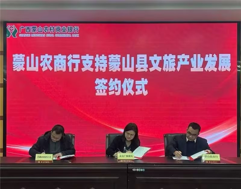 2月21日下午,蒙山县文旅项目合作三方签约仪式在蒙山农商行9楼会议室举行。蒙山县文化广电体育和旅游局、蒙山县永安鑫泰文化旅游开发有限责任公司、蒙山农商行三方代表共同签署合作协议,标志着蒙山县文旅产业发展迈入新阶段。此次合作将整合资源,推动蒙山县文旅产业高质量发展,助力乡村振兴,为当地经济社会发展注入新活力。