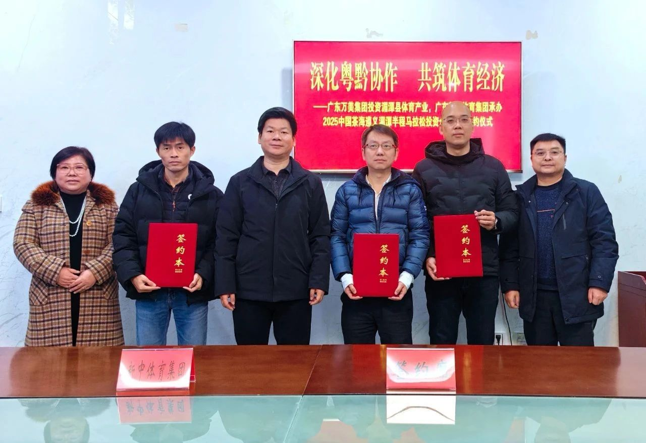2月26日,广东省粤黔协作工作队遵义工作组湄潭小组与广东万美集团和广东新中体育集团有限公司签订湄潭县全国户外运动圣地打造建设项目战略合作协议,总投资1亿元,共同打造“中国茶海·遵义湄潭马拉松”赛事品牌及“中国户外运动圣地”训练基地,共启以A级马拉松赛事为主的体育经济新征程。