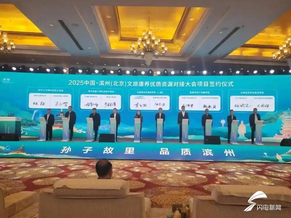 2月18日,2025中国·滨州(北京)文旅康养优质资源对接大会在北京举行。会议现场举行2025 中国·滨州(北京)文旅康养产业合作项目签约仪式,山东滨州奥特莱斯青春广场项目、中农联邹平智慧云仓冷链产业园项目、鹤伴山中药项目等10个项目现场签约,涵盖健康科技、智慧农业、中药制剂的新兴领域,总签约金额59.59亿元。