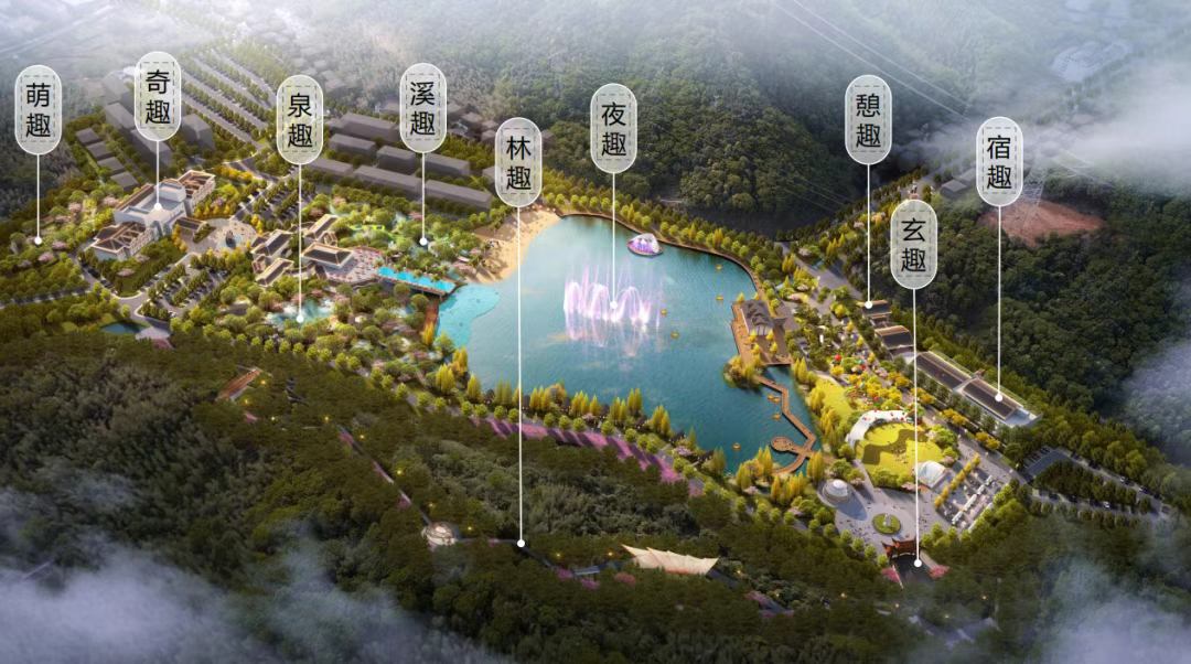 据悉,该项目位于崇仁镇温泉湖村,以“千年古越,一眼仙侠”为主题,以“一个景区,一个故事”为核心理念,定位为“国内首个越王IP文化体验地、千年仙侠穿越地、东方美学极致出圈地”。项目规划核心景区、古越探险乐园、温泉水寨三大板块,集景区游览、文化体验、户外运动、沉浸演艺、温泉康养等功能于一体,是一个以“越文化IP”为核心的综合性文旅度假胜地。