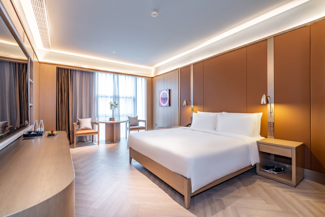 雷迪森世嘉(德清莫干山云朵酒店项目)地处德清莫干山,酒店客房按照中高端酒店标准装修配备,现代且时尚,房间内木质装修风格,同时彰显出酒店的古朴和典雅。
