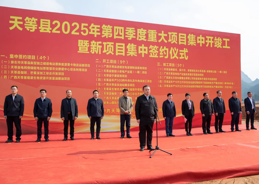 12月9 日,崇左市天等县举行2025年第四季度重大项目集中开竣工暨新项目集中签约仪式。其中剑龙山国际生态观光运动旅游区(一期)项目开工。