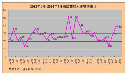 (迈点网 熊树安)2014年7月,进入迈点网“中国酒店业行业监测系统平台”的5982家星级酒店企业中,总共有38位高管被任命,任命人数较上月减少1位,下降3%;与去年同期相比减少了14位,降幅为27%。