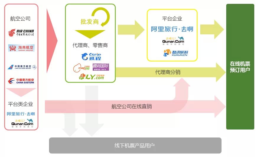 平台维度:去哪儿机票份额市场第一,阿里旅行·去啊紧随其后
