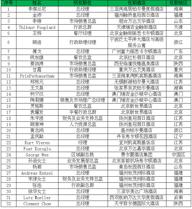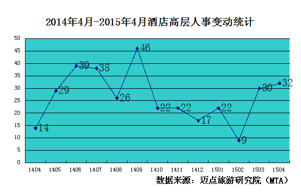 4月,在纳入监测的酒店中共有32位高管被任命,任命人数较上月(30位)上升6.67%,较去年同期(14位)上升128.57%。