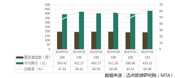 据浙江省旅游局统计,杭州地区四星级以上酒店共计66家,四星级标准以上酒店共计201家。据中国旅游新闻网报道,2015年第二季度杭州四星级(含未挂星)以上酒店出租率高达68.95%,全国出租率排行第五,上涨趋势排名第九。此外,受2022年亚洲运动会的带动,未来几年杭州酒店数量和游客人数将大幅度增长。