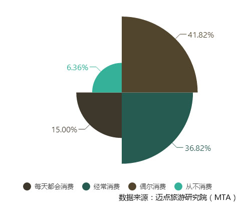 如图3-6所示,消费者在杭州地区2015年3季度高端酒店消费乳制品的习惯中,有15%的消费者每天都会消费;有37%的消费者经常会消费;有42%的消费者是偶尔消费;另外还有6%的消费者从未在酒店消费乳制品。