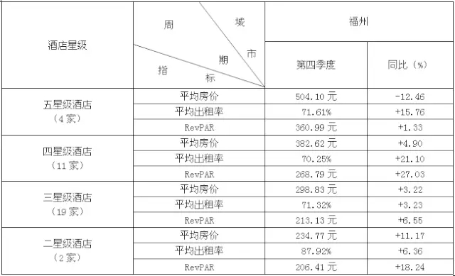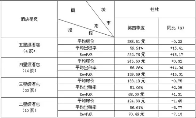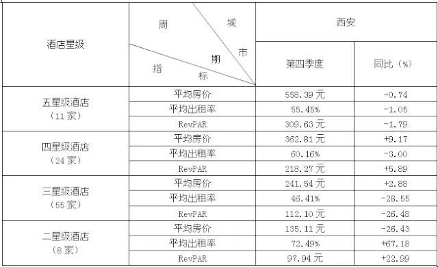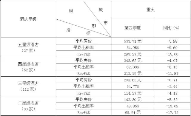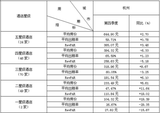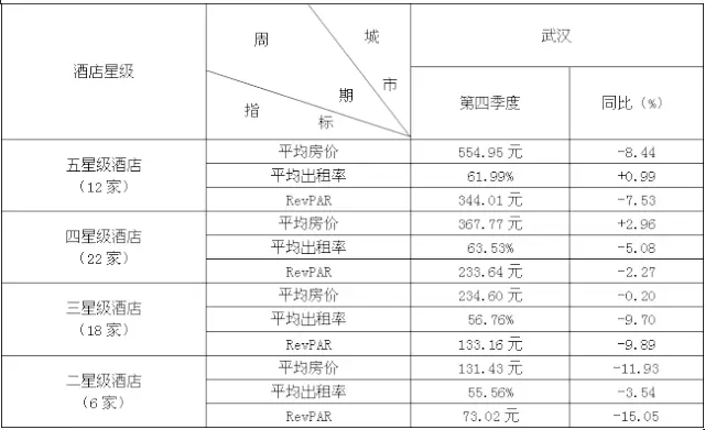 全国20个城市酒店经营数据统计