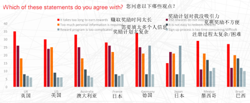•奖励的普及程度可能因成员的居住地而异。例如,在酒店内购物的折扣很高,在拉丁美洲(巴西68.53%和墨西哥64.06%)感兴趣,但在英国只有33%的表示对这个举措感兴趣或非常感兴趣。在英国,升级客房更受人欢迎(49%)。