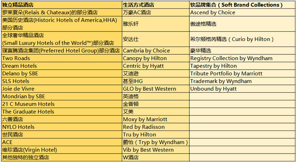值得注意的是,和美国酒店细分市场分类相一致(奢华酒店、超高端酒店、高端酒店、豪华中端酒店、中端酒店、经济型酒店)生活方式酒店和独立精品酒店还可以进一步细分为不同的等级。