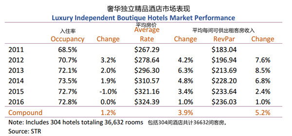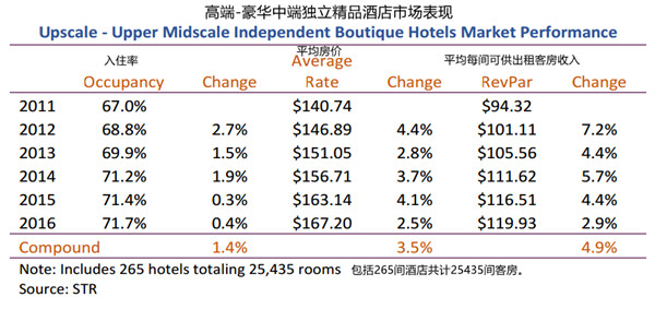 2017精品酒店报告:入住率普遍高于70%