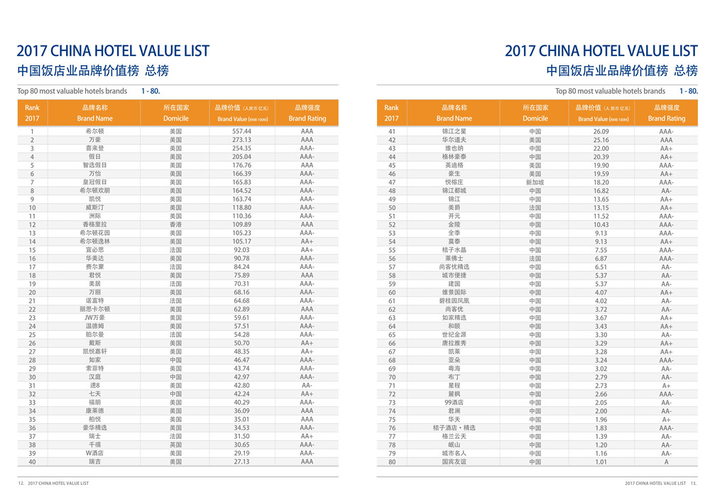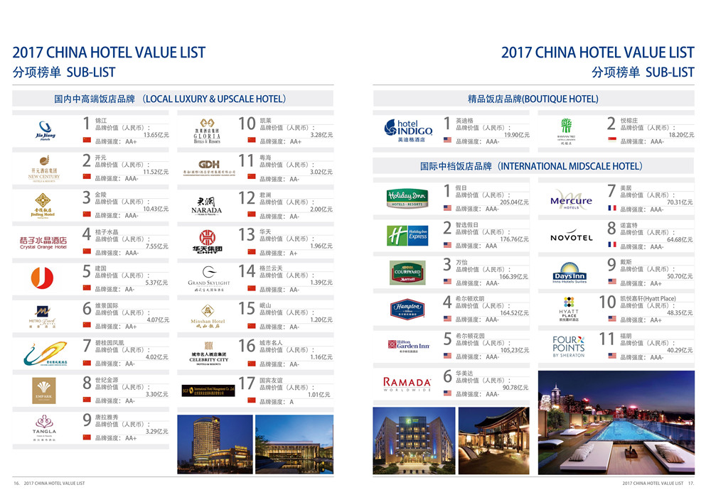 重磅发布:2017中国饭店业品牌价值榜 迈点网 · · 2017-11-23 12:52:27 分享到 打开微信“扫一扫”,打开网页后点击屏幕右上角分享按钮。 2017年11月23日,《2017年度中国饭店业品牌价值榜》在浙江宁波泛太平洋大酒店盛大召开的“中国饭店业品牌价值榜峰会”上隆重揭晓。 酒店数据 0