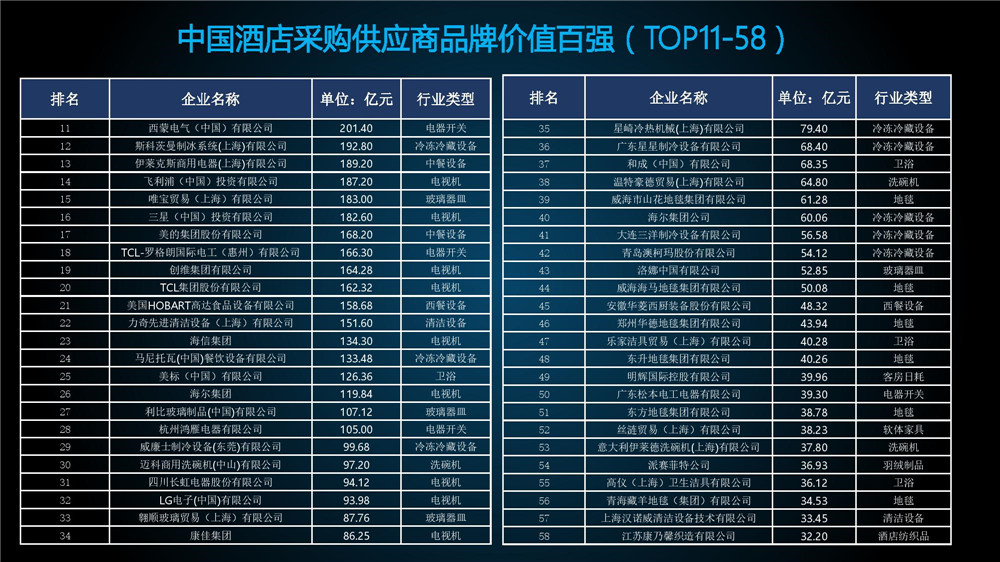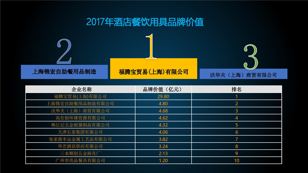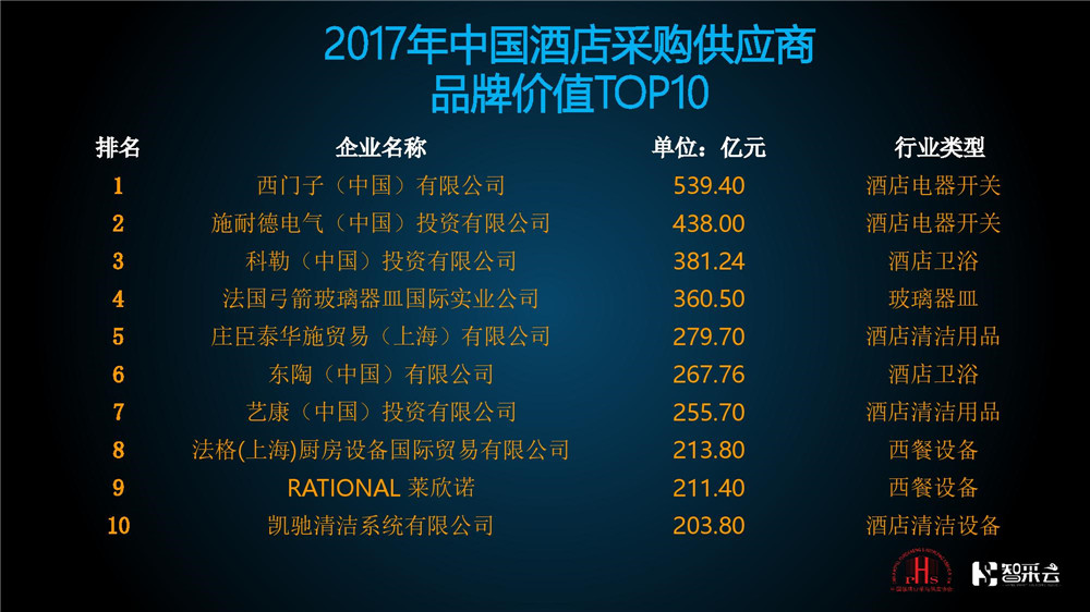 重磅发布:2017中国饭店业供应企业品牌价值榜