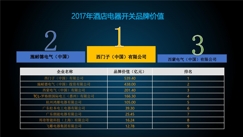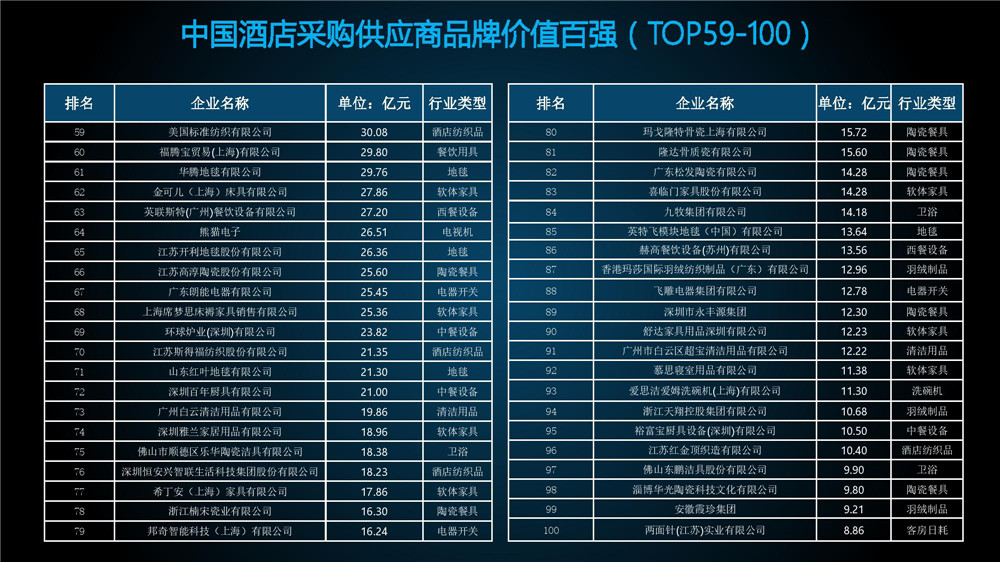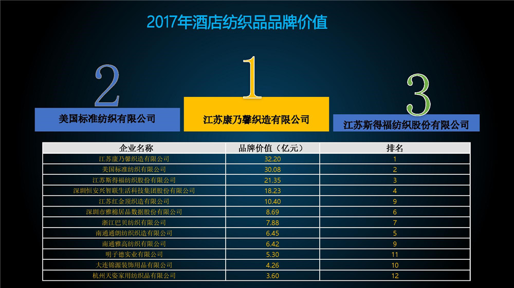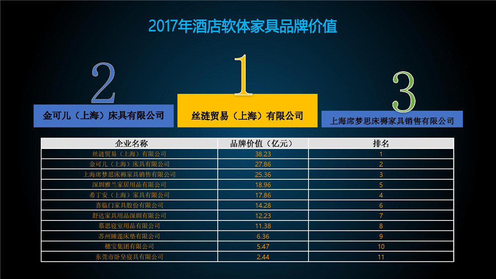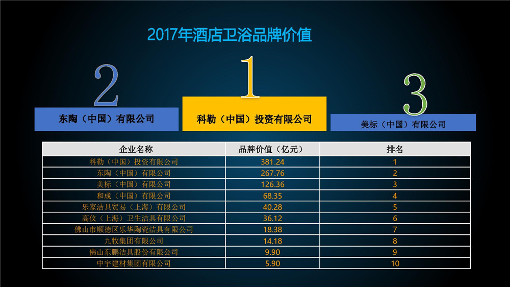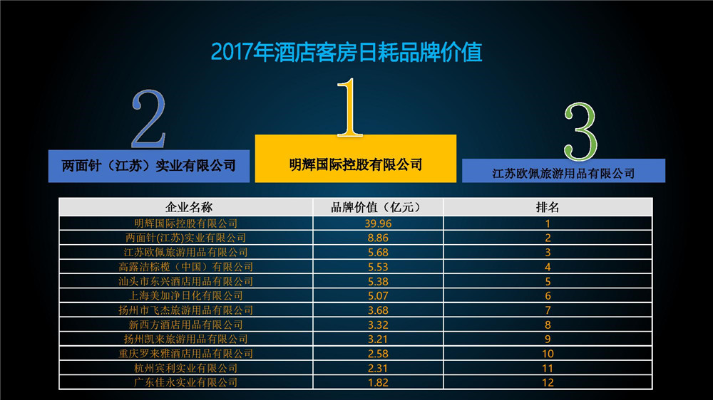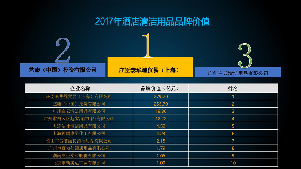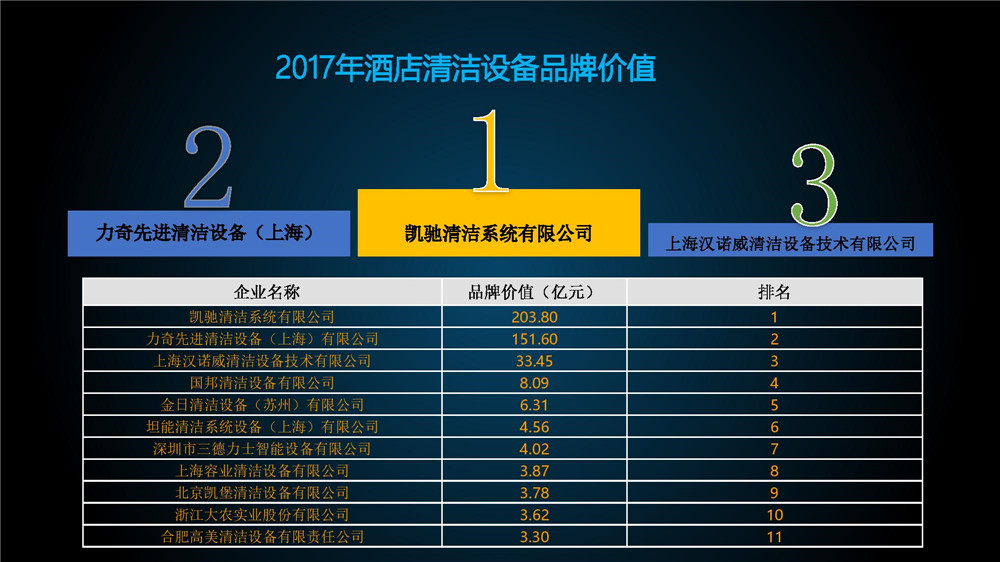 2017年11月24日,《2017年度中国酒店供应商品牌价值榜》在浙江宁波泛太平洋大酒店盛大召开的“中国饭店业品牌价值榜峰会”上隆重揭晓。