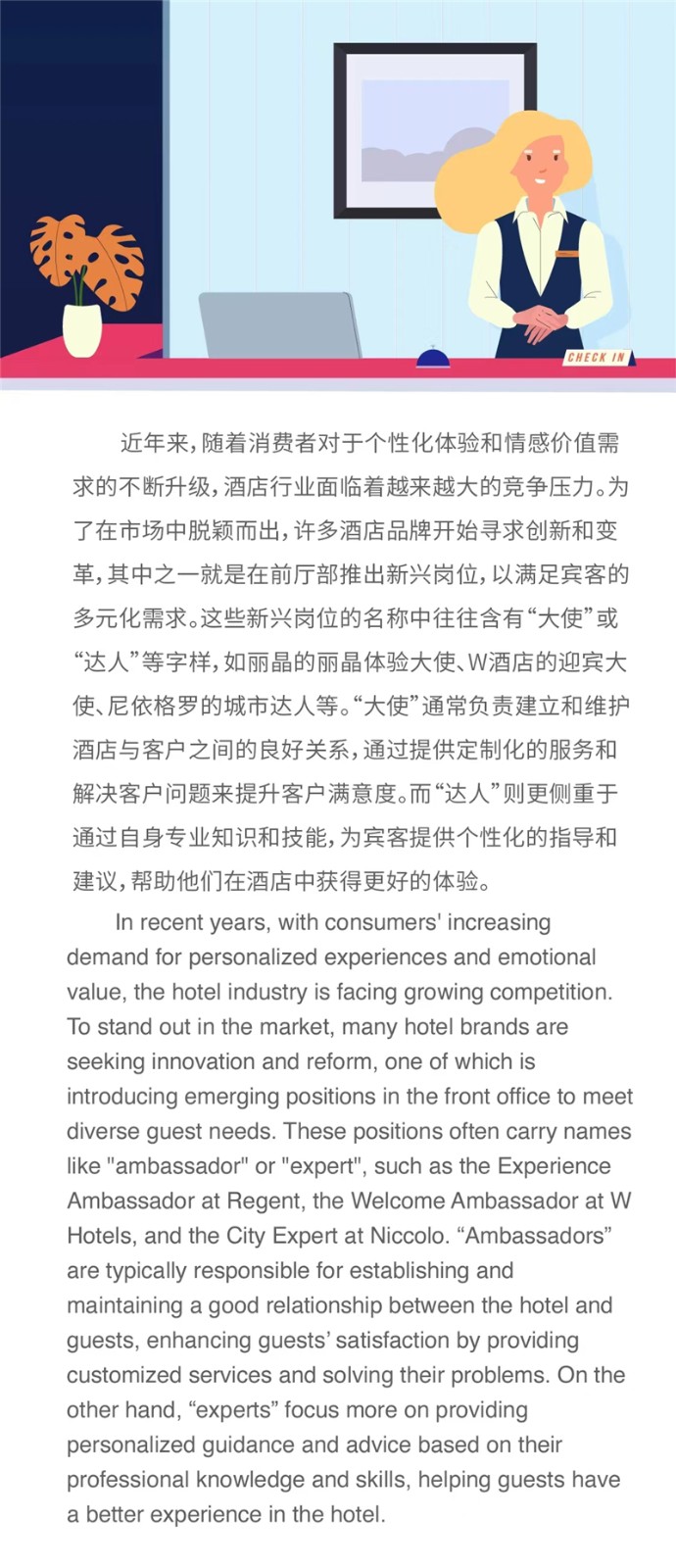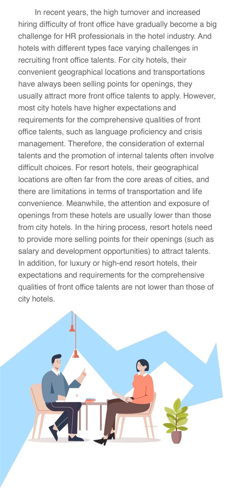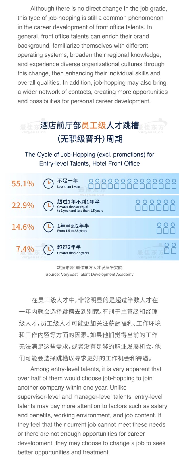 2024年酒店前厅部人才发展专题研究报告 最佳东方 · 2024-03-06 14:59:24 分享到 打开微信“扫一扫”,打开网页后点击屏幕右上角分享按钮。 薪酬分布:经理级7908元/月,主管级5459元/月,员工级4286元/月。 酒店 人才 薪酬报告 2