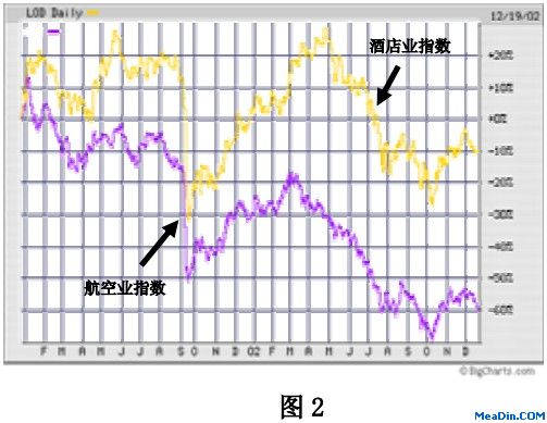 图2是两年来酒店业和航空业的比较,充分说明了这一点。