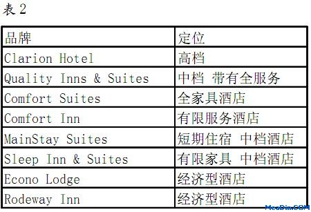 高度差异化的品牌认知。Choice针对不同的市场和不同层次的客户设计了每一个品牌的特色,使得任何客户和任何市场都能在Choice的品牌中寻找到适合自己的服务。