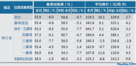[浙江]12年9月旅游饭店出租率及房价 迈点网 · Ann · 2012-11-05 10:34:22 分享到 打开微信“扫一扫”,打开网页后点击屏幕右上角分享按钮。 根据浙江省旅游局统计数据显示,9月份,浙江省饭店平均客房出租率55.9%,比去年同期下降6.0%;浙江省平均房价为328.3元/间,比去年同期增长了10.1%。 浙江旅游饭店 0