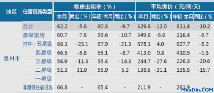 [温州]12年10月星级饭店平均房价和出租率 迈点网 · Data · 2012-11-26 13:44:57 分享到 打开微信“扫一扫”,打开网页后点击屏幕右上角分享按钮。 根据浙江省统计局统计数据,12年10月,温州市星级饭店平均房价为329.8元/间,同比降低12.0%。12年10月,温州市星级饭店平均出租率为62.2%,同比下降5.6%。 温州星级饭店 率 0