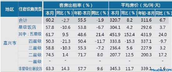 [嘉兴]12年11月星级饭店平均房价和出租率 迈点网 · Ann · 2012-12-29 11:27:23 分享到 打开微信“扫一扫”,打开网页后点击屏幕右上角分享按钮。 根据浙江省统计局统计数据,12年11月,嘉兴市星级饭店平均房价为320.7元/间,同比增长8.2%,11月平均出租率为60.2%,同比下降2.7%。 嘉兴 店 0