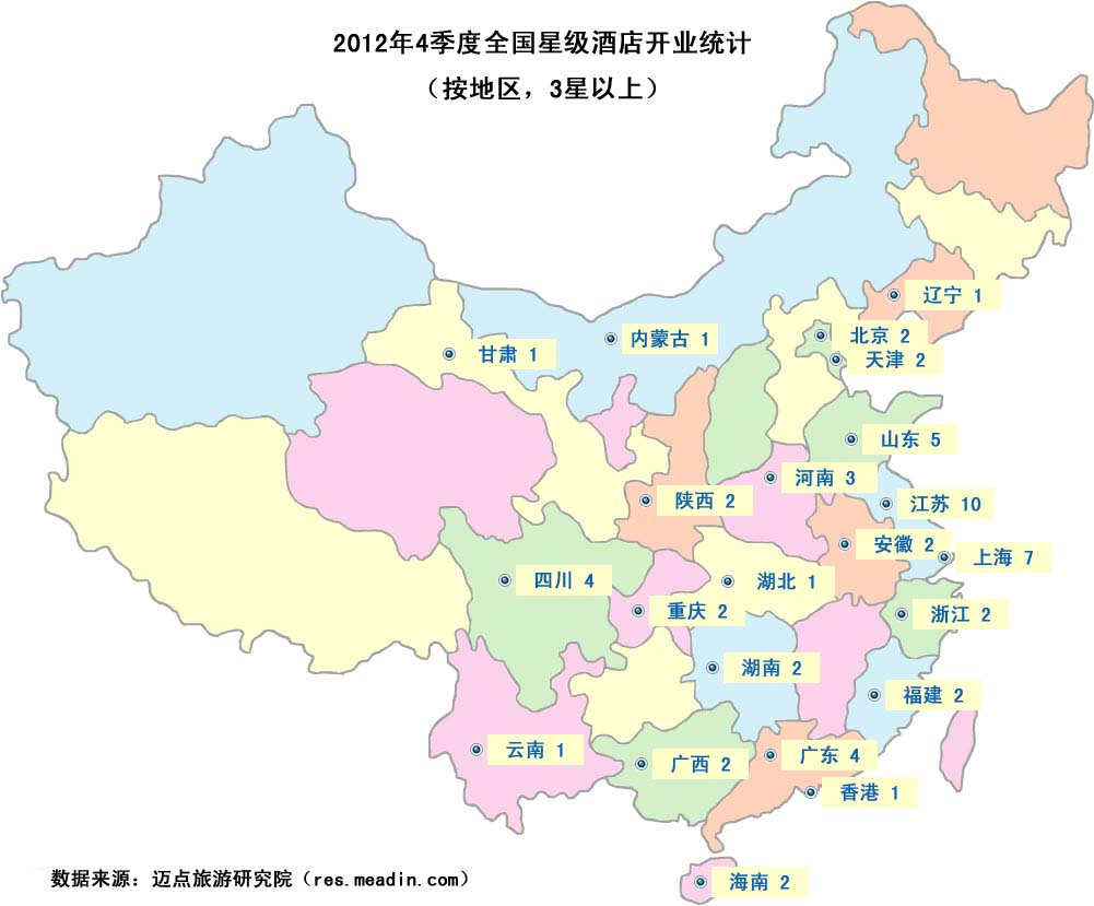 2012年4季度全国星级酒店开业统计(按地区,3星以上)