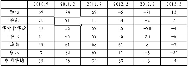 除华东和西北外,其他地区的酒店经营者由于经济发展态势低迷,都不看好2013年酒店业的发展前景。值得注意的是西北地区2013年得分13,而2012年得分为-71。2011年国际园艺博览会后,得分大幅下降。此外,西北地区开始吸引新的产业群,如三星产业园;此外酒店业也开始“向西部进发”,西北地区发展前景看好。